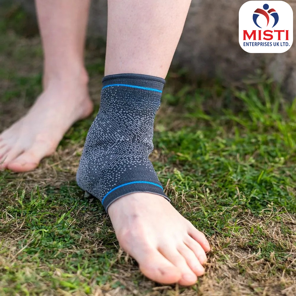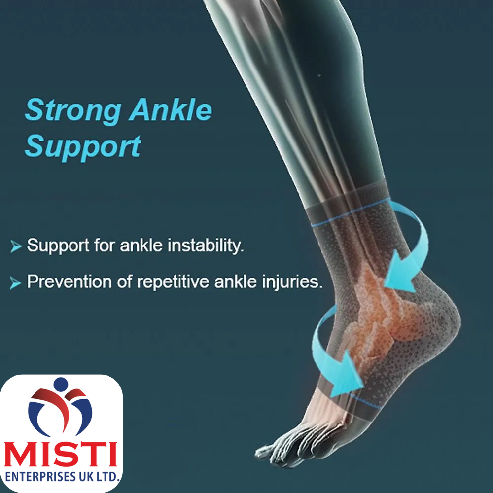 Designed to give support and compression to weak or injured ankle. The stabilizing silicon insert matches the ankle contours giving superior support with therapeutic compression. it can be used in high-impact, sporting activities or by individuals where repetitive ankle injuries are common. It also helps to control swelling, odema or sprains and rollovers of the ankle.