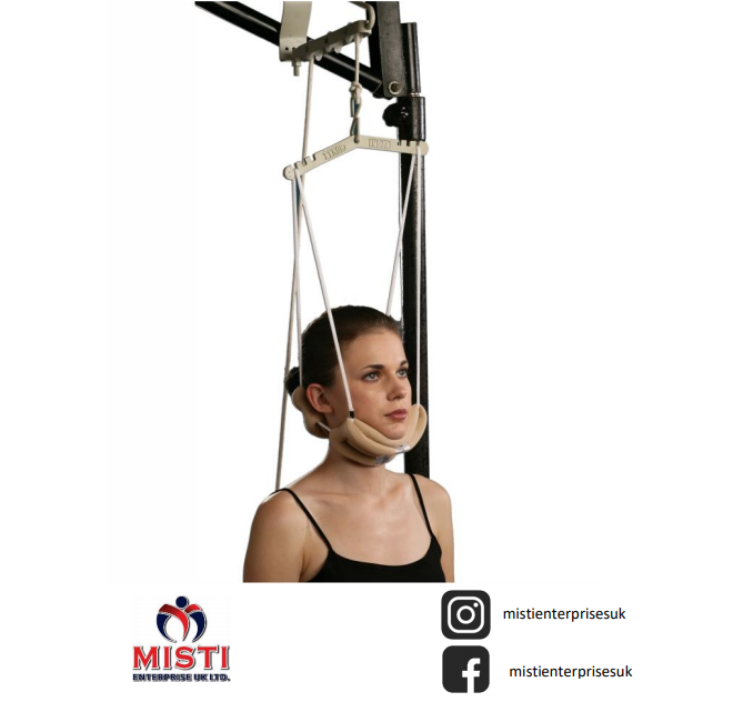 Cervical Traction Kit is a complete apparatus designed to provide traction to the cervical and upper dorsal vertebras. It relieves pressure by stretching the musculature and connective tissue components of the cervical spine. It expands the intervertebral joint space and relieves pressure on the anterior vertebral bodies.