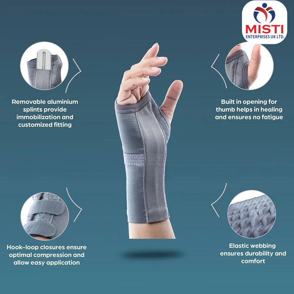 - Built-in opening for thumb abduction for neutral positioning and quick healing.