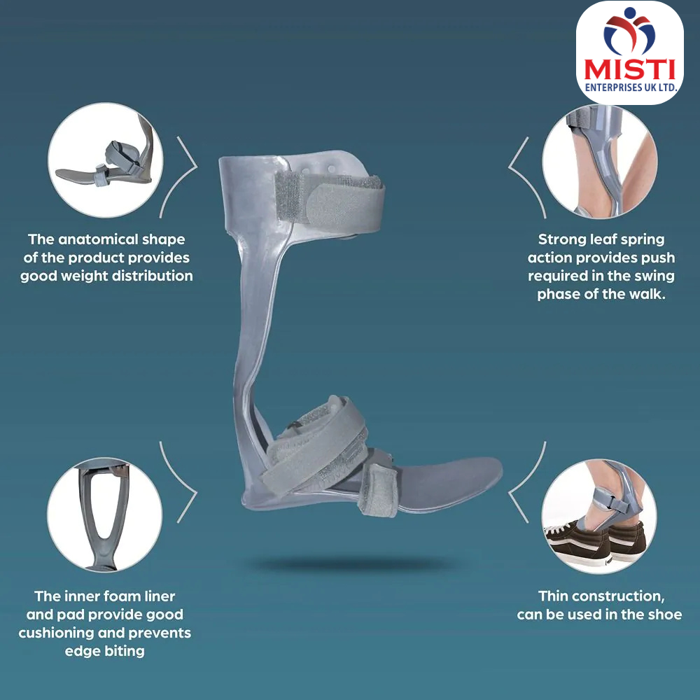 - Rigid construction and anatomical design provides support & maintains the hemiplegic foot in functional position.