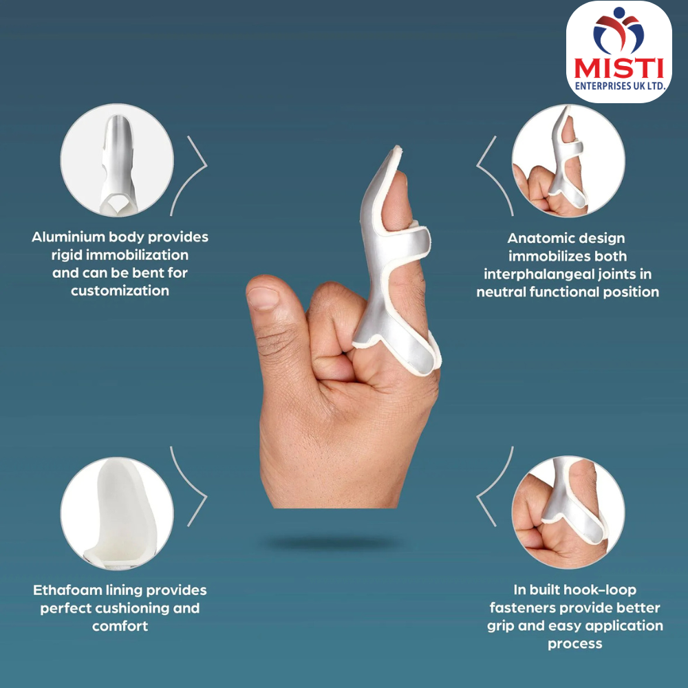 Designed to support and immobilize the inter-phalangeal joints of the fingers in their natural functional positions.  It provides a convenient and cost-effective treatment for various kinds of medical conditions of the fingers.