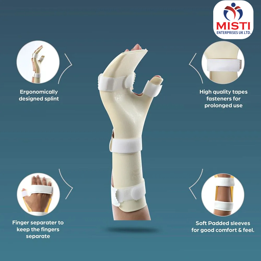 - Anatomically designed to immobilize the wrist, fingers and thumb in the functional or neutral position.