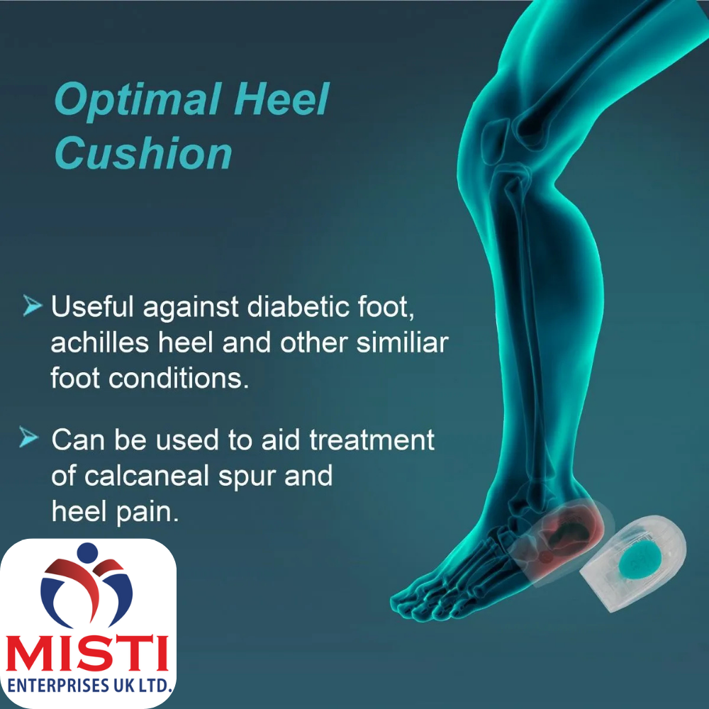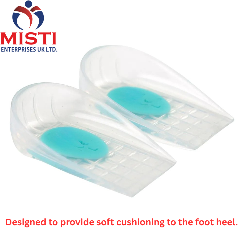 Designed to provide soft cushioning to the foot heel. Gel spot at the site of  calcaneus distributes and reduces pressure and relieves pain. Anatomically designed for better comfort and fitting.
