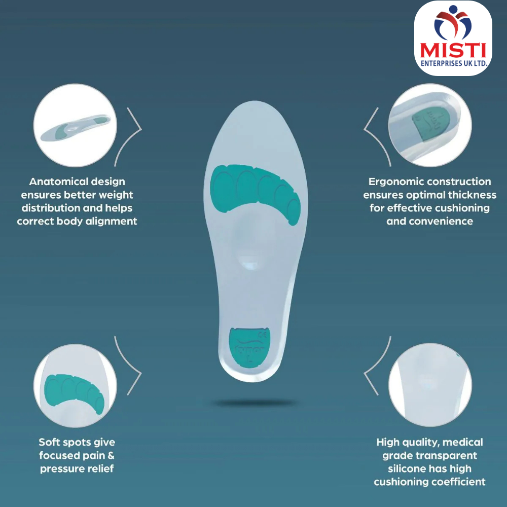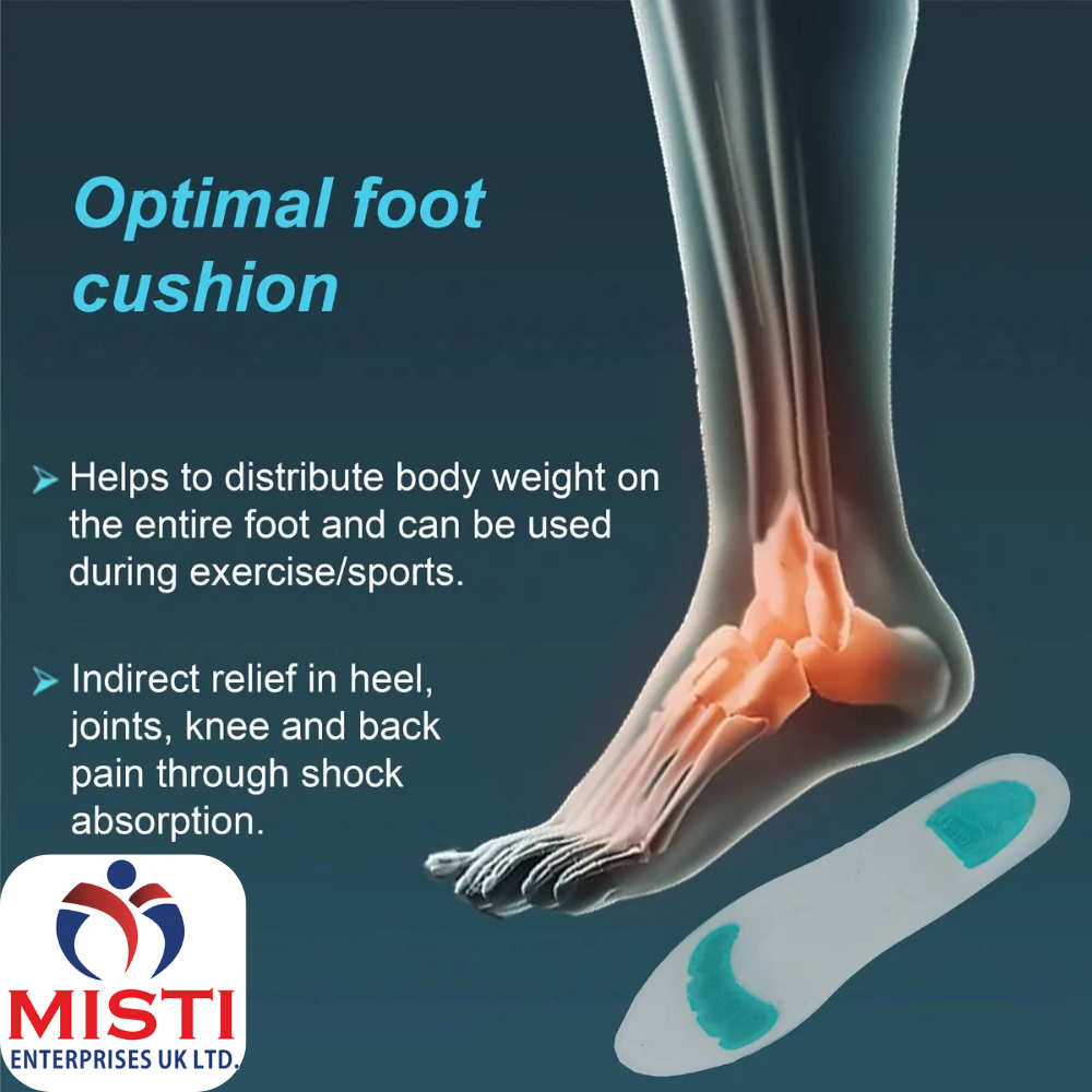 - Anatomically designed for weight distribution on the foot, it provides peak shock load reduction to the bones and the joint