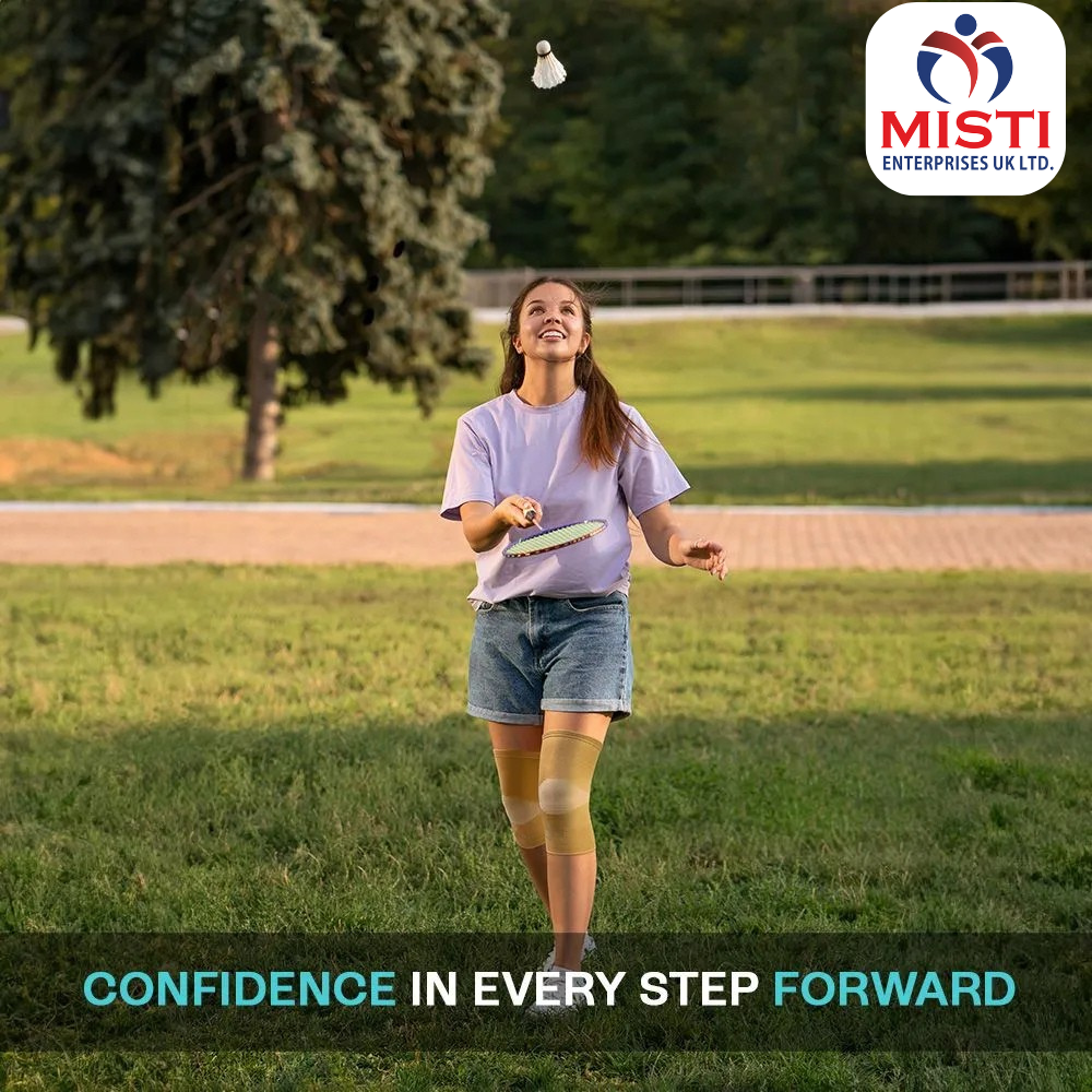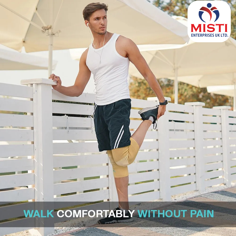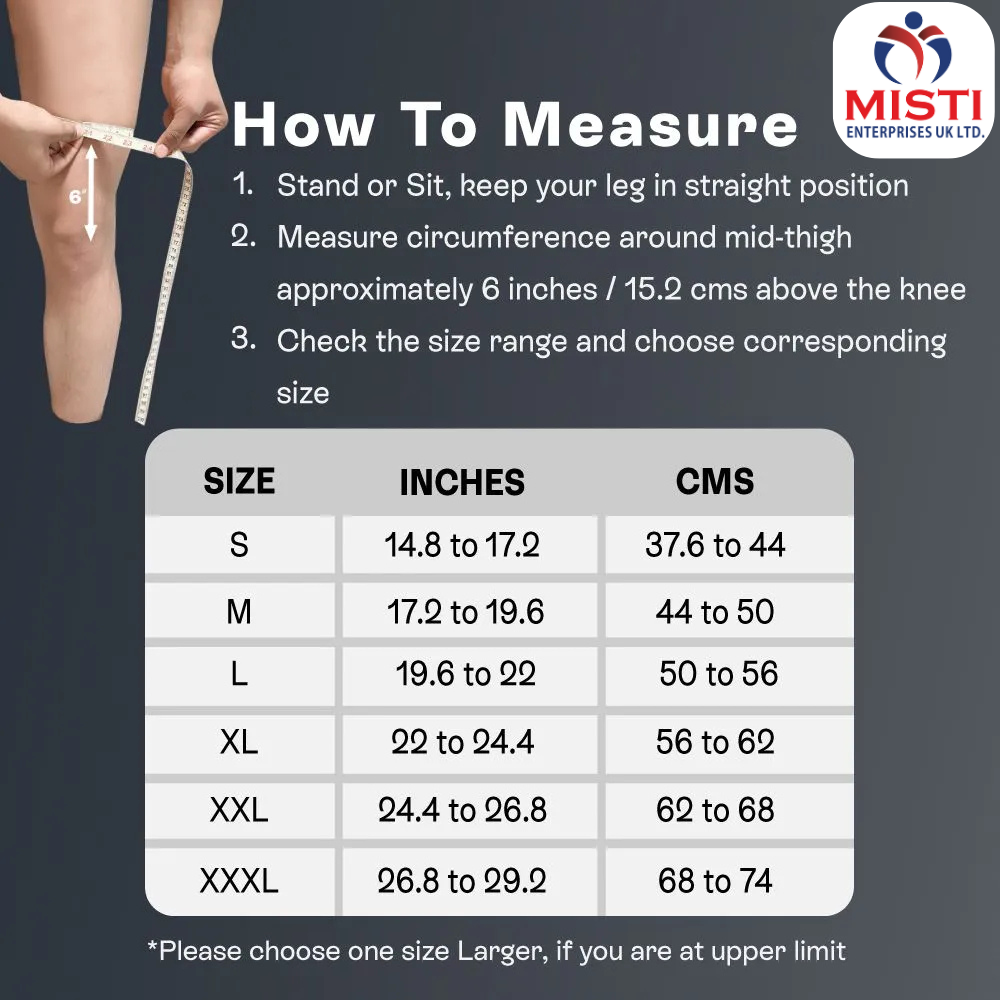 - Four way stretchable knit with “Spandex” provides effective compression, comfort and no buckling of fabric.