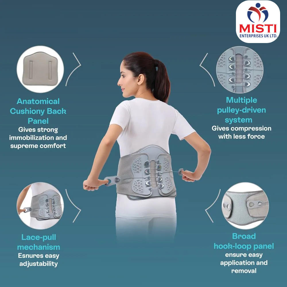 - Anatomic back panel provides excellent fitting, rigid immobilizationand posture correction.