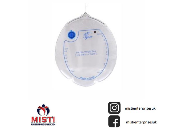 Pelvic traction kit comprises of a Pelvic Traction Belt, a Spreader Bar, Traction Pulley Bracket, a Traction Cord and a Weight Bag.