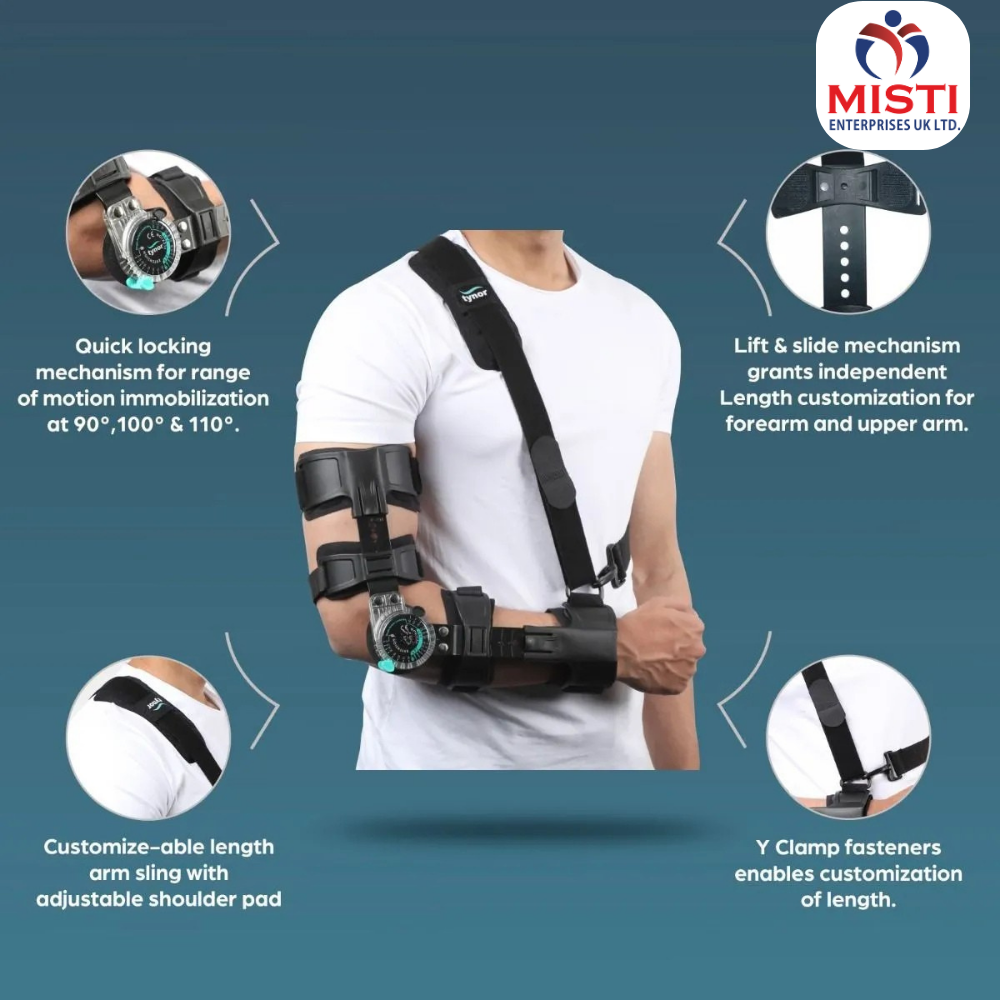 - ROM dial ensures quick locking, for immobilization at 90°,100° & 110°.