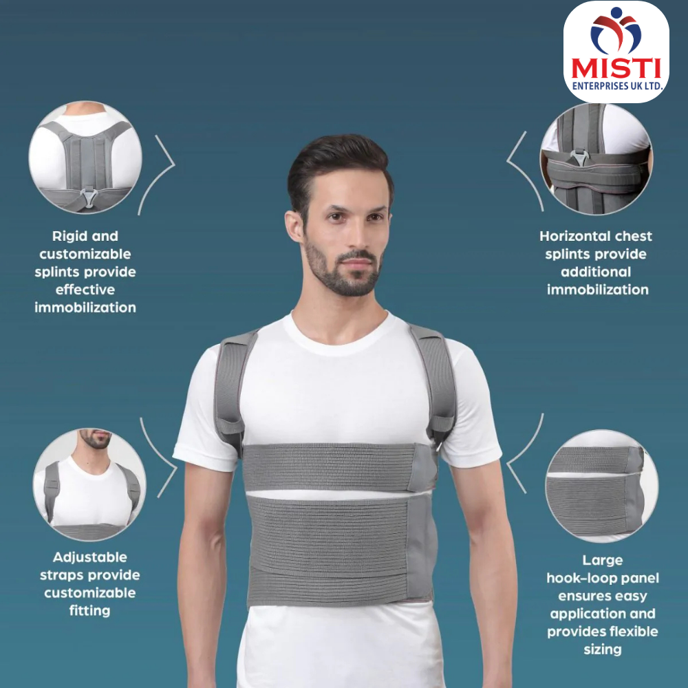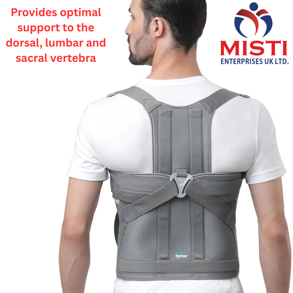 - Adjustable shoulder straps offer neutral spinal posture, firm grip & self-tightening of the brace.