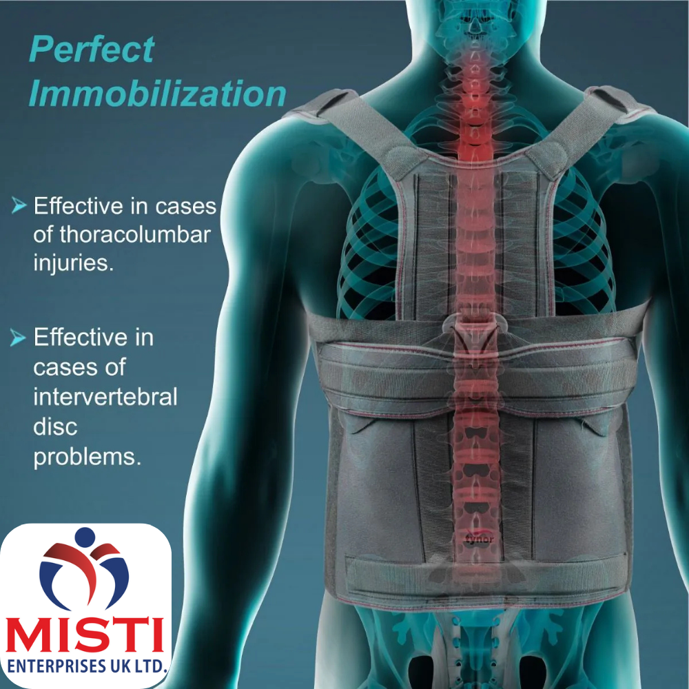 - Rigid, removable, customizable, anatomically contoured splints ensure perfect fitting, enhanced immobilization & right spinal posture.