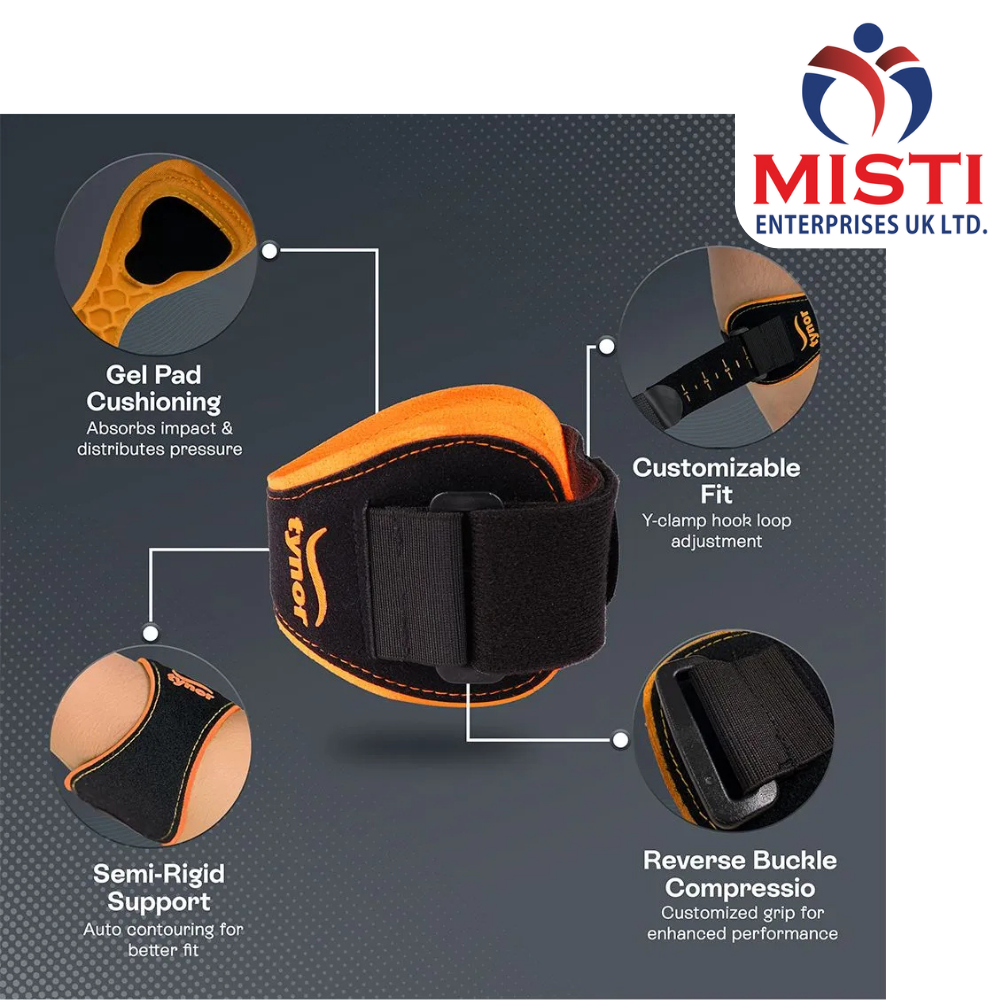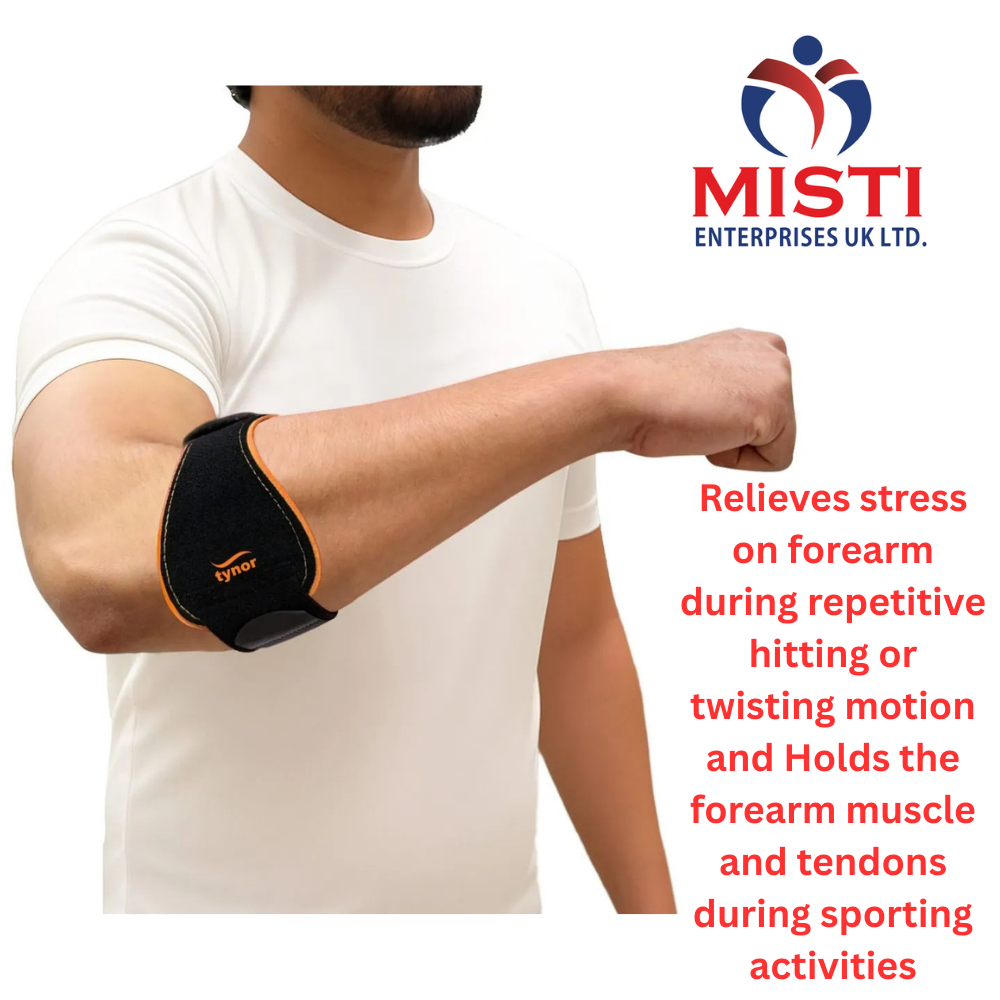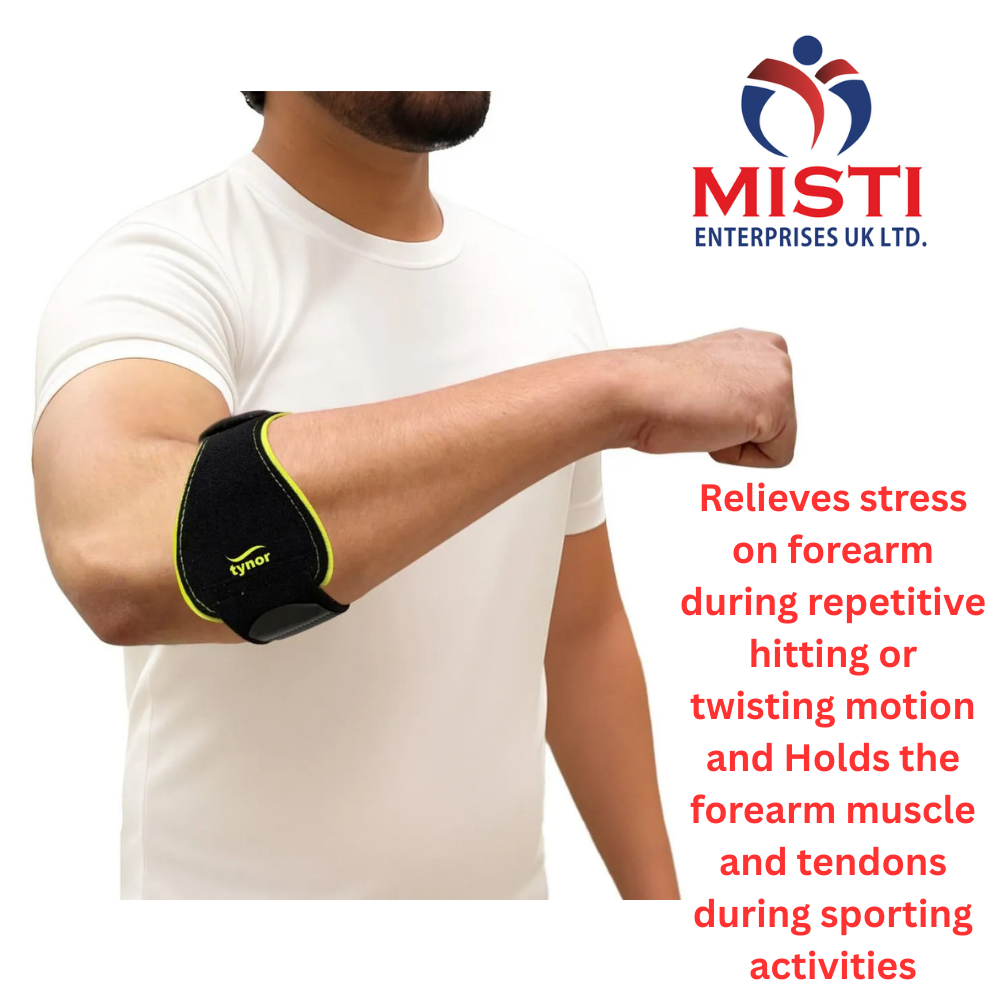 Forearm band to hold the muscles and the tendons of the forearm during sporting activity. It is specially designed for sports people playing racket sports, lifting weights or any activity to avoid stress on the forearm during repetitive hitting or twisting motion. This simple yet stylish band is absolutely necessary to prevent injury to the medial and lateral tendons of the forearm. The gel pad gives cushioning, absorbs vibration due to impact, and distributes pressure across tendons.